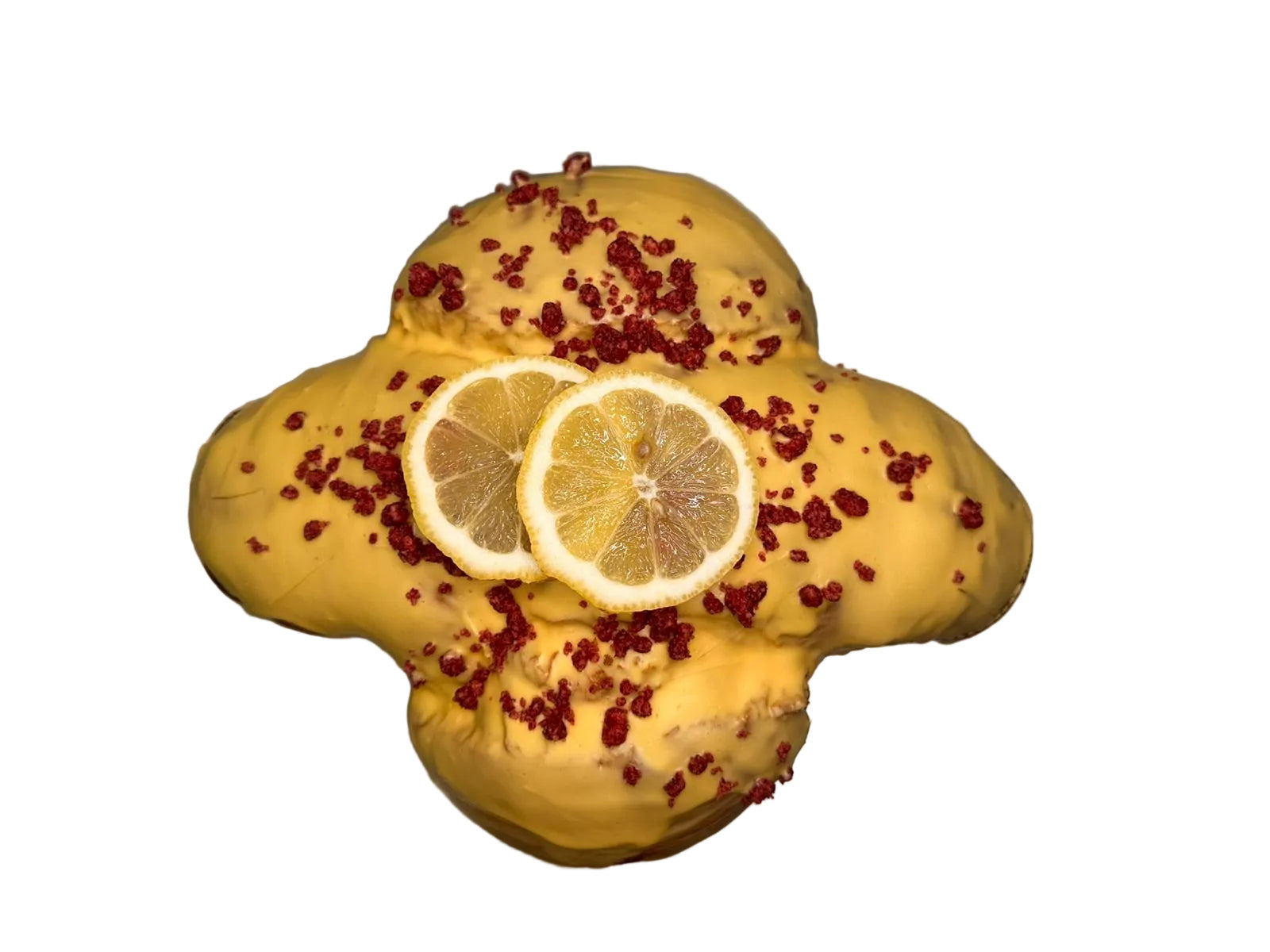 IMPASTO: Farina di frumento, lievito naturale in polvere di farina di frumento, Zucchero, burro, tuorli d'uova, emulsionanti, mono- e di gliceridi degli acidi grassi (E 471) glutine di frumento,sale,latte scemato in polvere, maltodestrine, proteine del latte, aroma, agenti di trattamento della farina, addo asorbico (E300) enzimi.